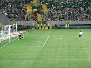 O Sporting entrou muito bem na partida e marcou bem cedo por Postiga! Os primeiros 15m da partida foram realmente o melhor do Sporting, parecia que iria sair de Braga com um resultado folgado. Tal não aconteceu, o Braga cresceu, teve bons momentos no no final da primeira parte com algumas ocasioes de golo..Na segunda metade o jogo foi muito disputado, muitas faltas, muitas paragens e pouco futebol. Tiro duas conclusões deste jogo, tudo corre melhor quando existe um bom banco e várias opções para as diversas posições, veja-se o caso dos avançados! Temos Liedson de fora, mas mesmo assim ainda não se sentiu, temos Derlei em grande forma (farta-se de trabalhar), Yannick teve fora este jogo e mesmo assim Postiga esteve à altura, assim certamente Bento dorme melhor à noite...Alguns amigos meus dizem-me que este ano Bento vai ter dificuldades em gerir o plantel, pelo contrário acho que com tantas frentes, estas várias opções serão mel para o nosso treinador. Por fim ontem viu-se que o Sporting conseguiu gerir melhor a vantagem, e como disse o Paulo Bento "Controlar sem dominar" e isso foi claramente o que aconteceu na segunda parte. Força Sporting